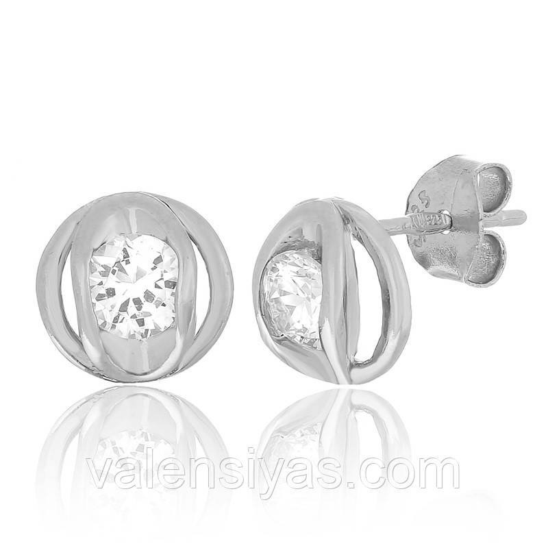 Срібні сережки-цвяшки з білими каменями СК2Ф/413